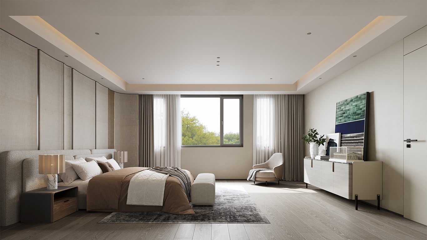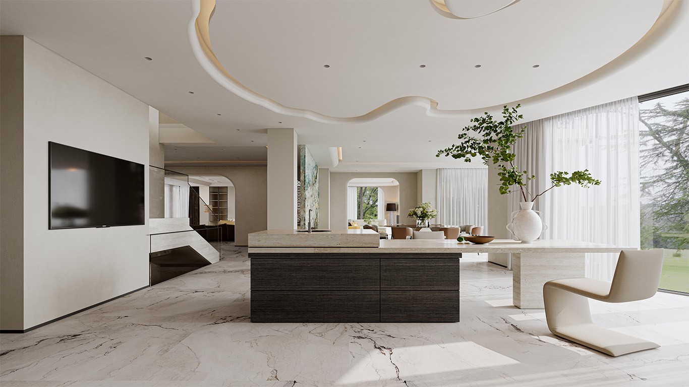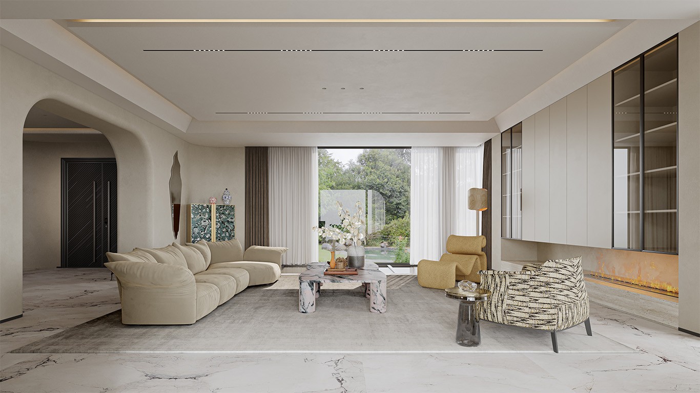 这栋住宅风格仿佛就是客户的性格写照:精致、专注、成熟。从而放松和舒适是我想要表达的意图。本方案从空间布局和界限上突破常规的思路,而常规中则又有新意。黑白灰的基色搭配静谧的蓝,跳跃而灵动。在表现的视觉之下,极尽克制,投射出空间的美学与艺术的张力。清新之感扑面而来。